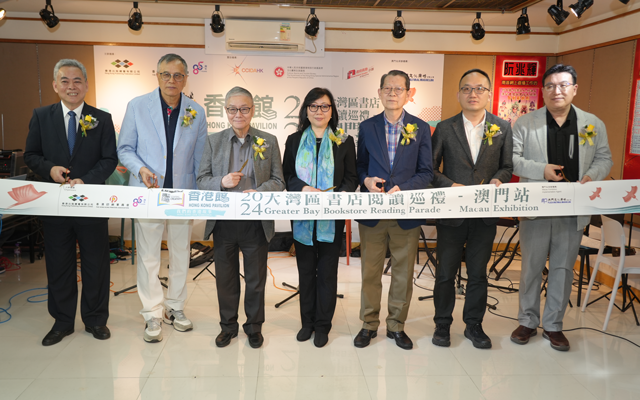 - 為推廣香港出版及印刷業,並協助業界開拓境外商機,由香港出版總會及香港印刷業商會合辦,文創產業發展處資助的「騰飛創意-香港館」項目(下稱「騰飛創意」項目),繼今年3、6及8月於意大利「博洛尼亞兒童書展」、「北京國際圖書博覽會」及廣州「南國書香節」設立線上線下「香港館」後,再接再厲首辦「大灣區書店閱讀巡禮」,於今年10月至明年1月巡迴澳門、中山、佛山及東莞四地的書店展銷香港暢銷書籍,旨在促進粵港澳大灣區同城文化共融,弘揚優秀特色灣區文化。首站澳門站於10月5日假澳門文化廣場展覽廳揭幕,邀得「騰飛創意 – 香港館」項目籌委會主席 陳儉雯女士、澳門基金會行政委員會委員 區榮智先生、《中國戲曲志·澳門卷》主編 沈秉和先生、著名作家、資深粵劇藝術家 阮兆輝教授、香港中文大學中國語言及文學系系主任 潘銘基教授、澳門文化廣場董事總經理 陳雨潤先生,以及「騰飛創意-香港館」項目籌委會委員 于克凌先生一同剪綵,場面熱鬧。 「大灣區書店閱讀巡禮」之澳門站展期為10月5日至22日,展銷超過600本香港最新出版的精選圖書,同時為配合「弘揚中華文化」的主題,展出創新紙製立體獅頭及立體發光祥龍,彰顯高超紙藝技術,同場並展出美觀與實用兼備的獅頭紙椅,以及由文創產業發展處資助的第一及二屆「想創你未來 - 初創作家出版資助計劃」及第三屆及四屆「香港出版雙年獎」的獲獎書籍等,將加深參觀者對香港出版及印刷創意的認識
