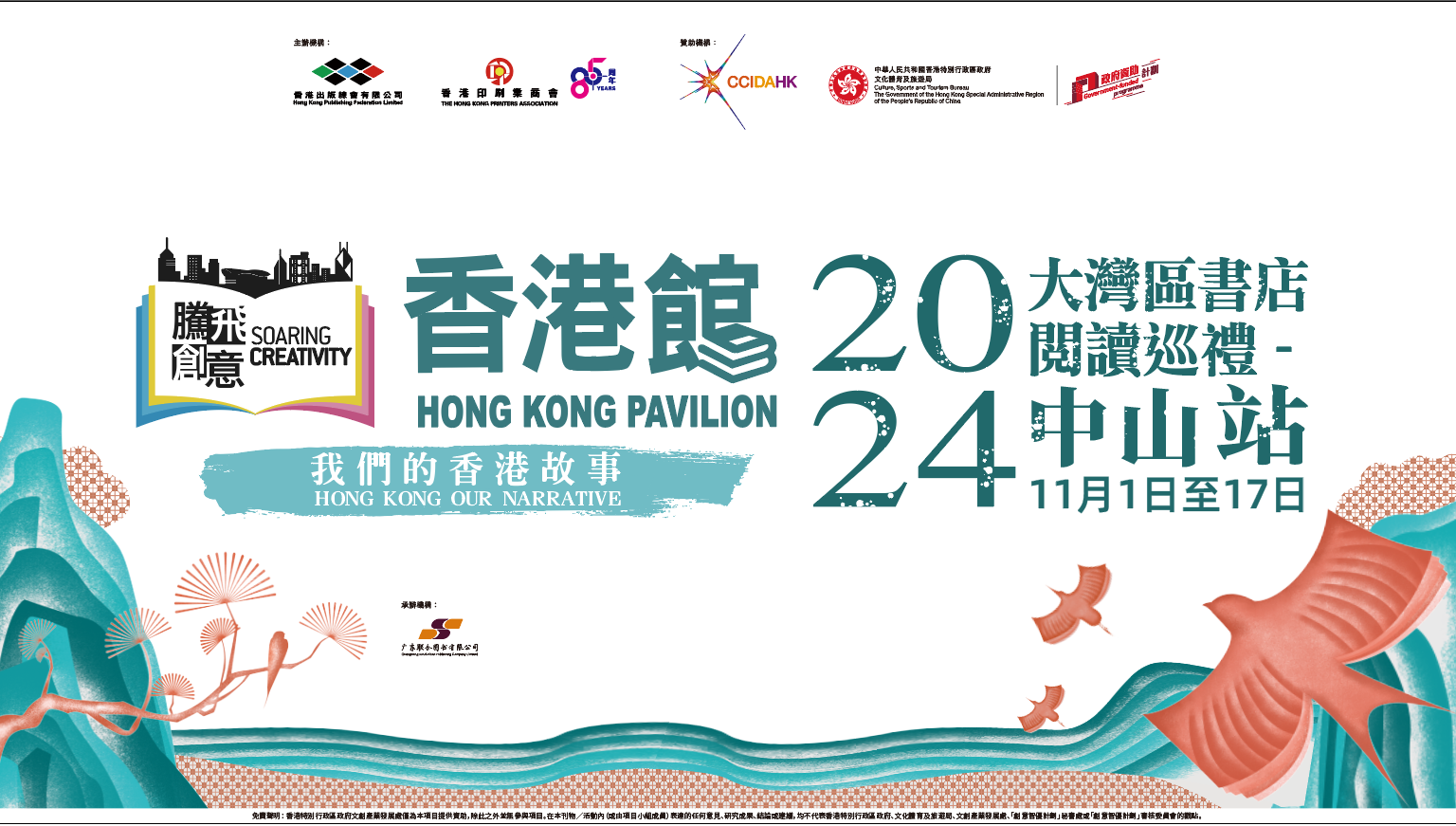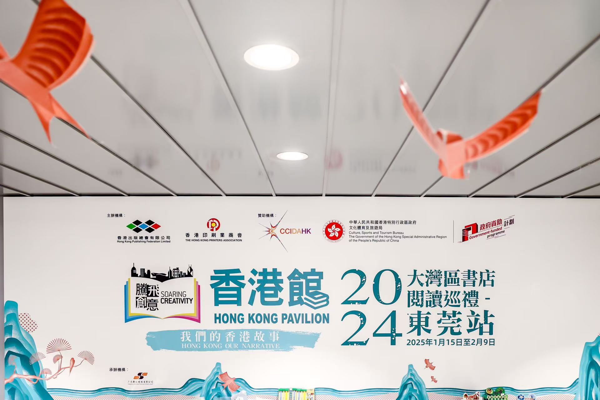 - 由香港出版總會及香港印刷業商會合辦,文創產業發展處資助的「騰飛創意-香港館」項目,今屆首辦「大灣區書店閱讀巡禮」,繼澳門、中山及佛山站順利舉行後,「巡禮」最終站於2025年1月15日在東莞揭幕。此次活動設有精選香港書籍的展銷,將於東莞松山湖文化藝術街區的鍾書閣舉行,展期至2月9日。 本次東莞站將展銷約1,800本精選香港圖書,全部均有八折優惠,讓讀者近距離感受香港書香文化的無限魅力。現場更特別展出多本獲獎佳作,包括由文創產業發展處資助的第一及二屆「想創你未來-初創作家出版資助計劃」及第三及四屆「香港出版雙年獎」的獲獎書籍。為了呼應「巡禮」的「弘揚中華文化」主題,場內還展出創新印刷藝術品,如立體獅頭、發光祥龍及獅頭紙椅,巧妙地融合傳統中國紙藝與現代印藝工藝。同場亦展出多款獲獎香港印刷品,呈現香港在印刷藝術領域的非凡創意與突破。每一頁書背後都蘊藏著無限的想像,每一件印刷藝術作品都訴說著獨特的故事。