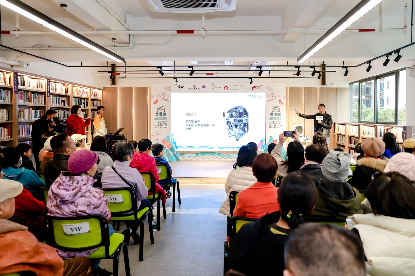 - 為推廣本港優質與創新的文創產業,由香港出版總會及香港印刷業商會合辦,文創產業發展處資助的「騰飛創意-線上線下香港館」項目(下稱「騰飛創意」項目),今年首辦「大灣區書店閱讀巡禮」(下稱「巡禮」),早前順利完成澳門站和中山站後,今天(15日)到明年1月5日在佛山古鎮新華悅讀空間舉行佛山站,展銷約1800本香港精選圖書,是跨年至2025年的印刷與出版業界粵港澳大灣區的文化交流盛事。 巡禮佛山站舉行了一場以弘揚中華武術為特色的專題分享會,由著名收藏家及作家吳貴龍先生以「龍影香江——李小龍的傳奇」為演講主題,回顧一代國際武打巨星李小龍的輝煌傳奇。除了細述李小龍的精彩故事,吳貴龍先生更為現場觀眾準備了李小龍主題年曆作為一份特別的新年禮物。