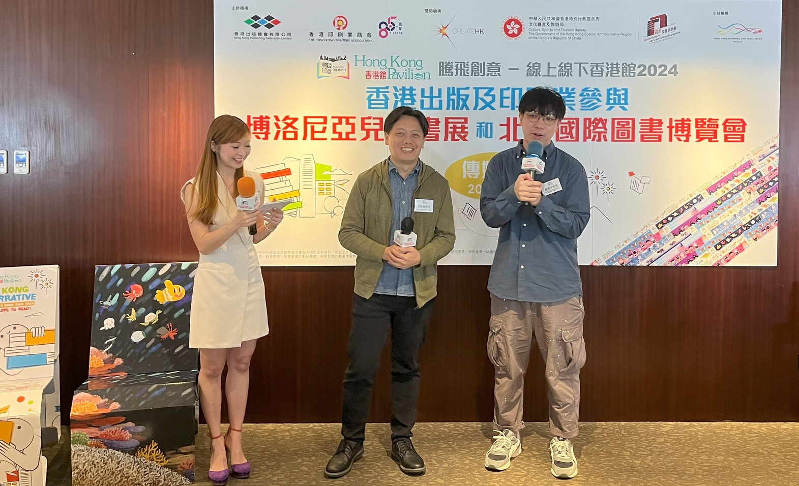 「騰飛創意─線上線下香港館2024」(下稱「騰飛創意」)項目今日(3月26日)舉行傳媒午宴,介紹參展「2024博洛尼亞兒童書展」及「2024北京國際圖書博覽會」的詳情。大會很榮幸邀請到「創意香港」署理總監曹黎淑霞女士出席,以及一眾主辦機構代表,包括:「騰飛創意」項目籌委會主席 陳儉雯女士、「騰飛創意」項目籌委會副主席 任澤明先生、2024 博洛尼亞兒童書展「香港館」主席 任德聰先生、2024北京國際圖書博覽會「香港館」主席 于克凌先生,以及2024北京國際圖書博覽會「香港館」副主席 呂振邦先生蒞臨支持。
